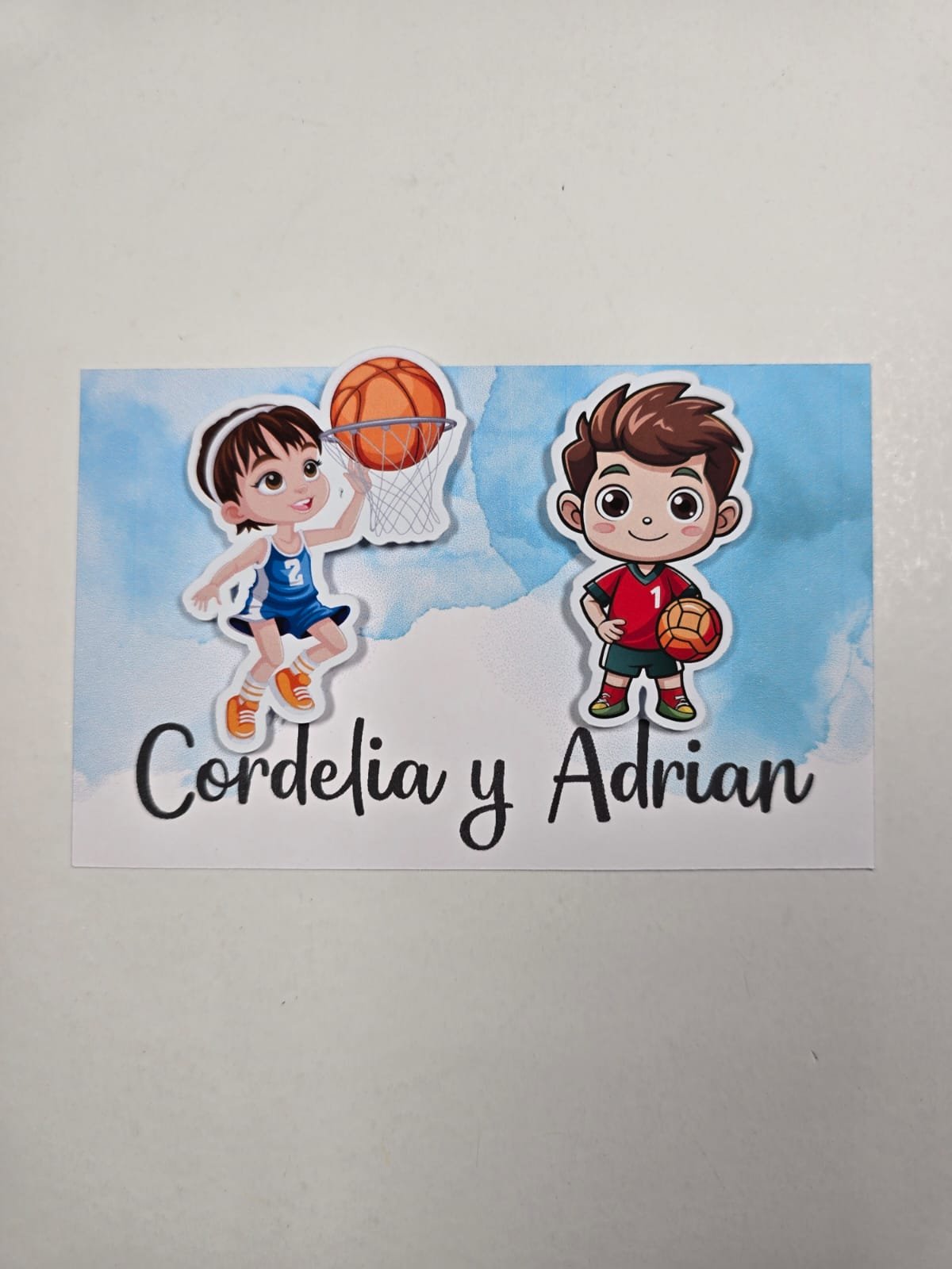 12 Tarjetas personalizadas con fondo impresion color total con figuras de deportistas en relieve (3D), medidas 7.50 x 12 cms.